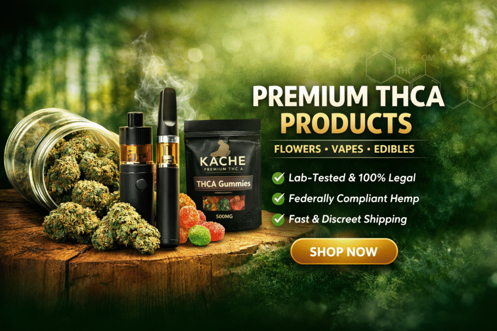 Whether you’re exploring Cannabis products for the first time or you’re an experienced customer, our collection is designed to offer reliable options across multiple formats. From aromatic THCA flower to convenient vapes and edibles, Kache Premium THCA delivers a carefully curated experience backed by testing, compliance, and customer care.